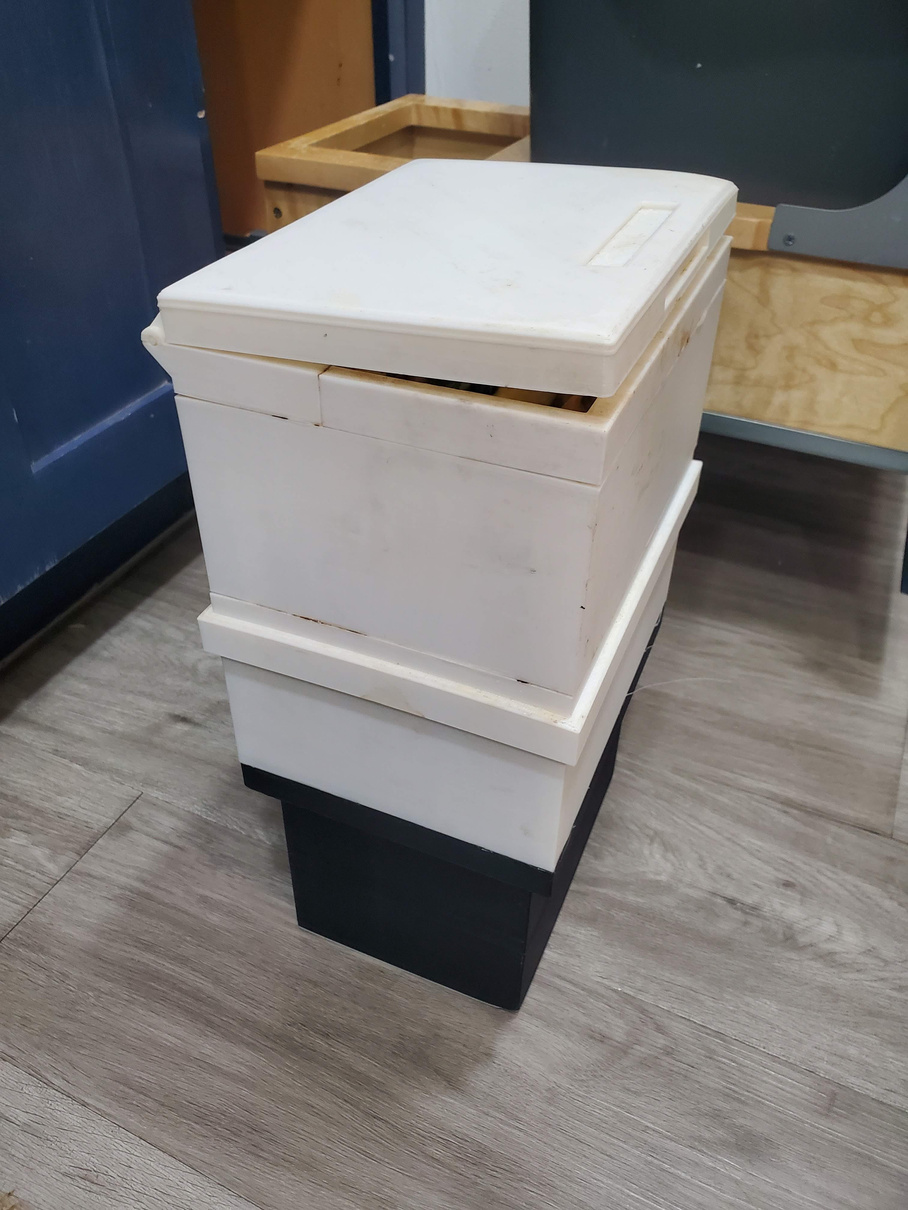 An empty space in my kitchen's waste basket drawer desperately needed to be utilized. We like to compost so why not make a custom compost bin. Had to print in 3 parts and 3D printed the hinge!
